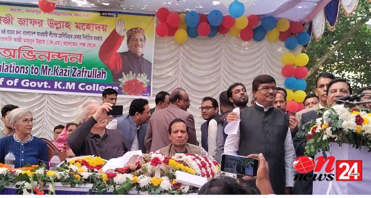 ভাঙ্গা সরকারী কেএম কলেজের পক্ষ থেকে কাজী জাফরউল্লাহ’কে দেওয়া এক সংবর্ধনা অনুষ্ঠানের প্রধান অতিথির বক্তব্যে এসব কথা বলেন কাজী জাফর উল্লাহ।