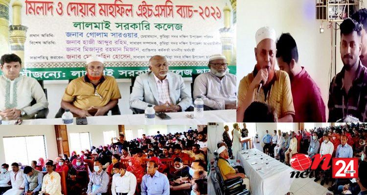 কুমিল্লার ঐতিহ্যবাহী লালমাই সরকারি কলেজ ছাত্রলীগের উদ্যোগে বৃহস্পতিবার কলেজ মিলনায়তনে এইচএসসি পরীক্ষার্থীদের বিদায় উপলক্ষে মিলাদ ও দোয়া অনুষ্ঠিত হয়েছে। অনুষ্ঠানে প্রধান অতিথি হিসেবে উপস্থিত ছিলেন কুমিল্লা সদর দক্ষিণ উপজেলা পরিষদ চেয়ারম্যান গোলাম সারওয়ার। বিশেষ অতিথি হিসেবে উপস্থিত ছিলেন সদর দক্ষিণ উপজেলা আওয়ামী লীগ সাধারণ সম্পাদক হাজী আব্দুর রহিম, অর্থমন্ত্রীর পিও মোঃ মিজানুর রহমান