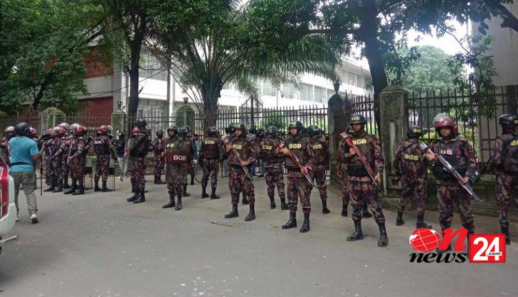শুধু ঢাকা বিশ্ববিদ্যালয়ে ক্যাম্পাসেই সাত প্লাটুন বিজিবি মোতায়েন করা হয়েছে। মঙ্গলবার (১৬ জুলাই) রাত নয়টায় বিজিবির সদস্যরা ক্যাম্পাসে ঢুকে উপাচার্য বাসভবনের সামনে অবস্থান নেয়।