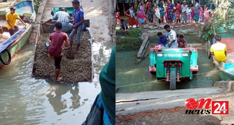 কাঠালিয়ায় ব্রীজ ভেঙ্গে খালে, ইউনিয়ন বাসীর চরম দূর্ভোগ
