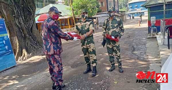 কালীপুজা উপলক্ষ্যে হিলি সীমান্তে বিজিবিকে মিষ্টি উপহার দিয়ে শুভেচ্ছা জানিয়েছে বিএসএফ
