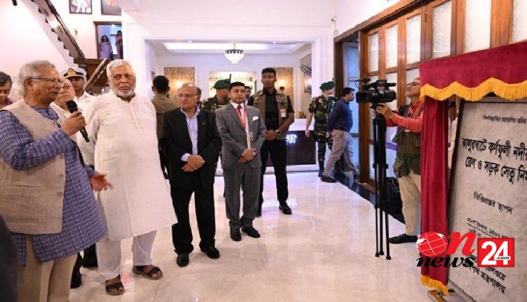 চট্টগ্রামের কালুরঘাটে কর্ণফুলী নদীর ওপর বহুল প্রত্যাশিত রেলসহ সড়ক সেতু নির্মাণকাজের আনুষ্ঠানিক উদ্বোধন ঘোষণা করেছেন অন্তর্বর্তী সরকারের প্রধান উপদেষ্টা প্রফেসর ড. মুহাম্মদ ইউনূস।