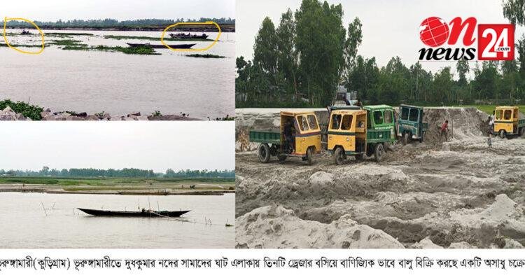 কুড়িগ্রামের ভূরুঙ্গামারীর দুধকুমার নদ থেকে অবৈধভাবে বালু উত্তোলন করে বিক্রি করছে একটি শক্তিশালী চক্র। উপজেলার চর-ভূরুঙ্গামারী ইউনিয়নের ইসলামপুর গ্রামের সামাদের ঘাট এলাকায় দুধকুমার নদে তিনটি ড্রেজার মেশিন বসিয়ে বালু উত্তোলন করায় হুমকির মুখে পড়েছে নদের তীর রক্ষা বাঁধ।