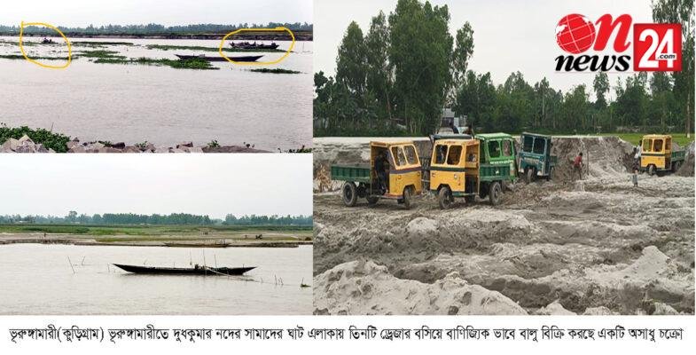 স্থানীয়দের সাথে কথা বলে জানাযায়, দুধকুমার নদের তীরে কুড়িগ্রাম পানি উন্নয়ন বোর্ড প্রায় ১২ কোটি টাকা ব্যয়ে ৫০০ মিটার তীর রক্ষা বাঁধ নির্মাণ করছে। সেই তীর রক্ষা বাঁধকে হুমকিতে ফেলে বাঁধের কাছেই ৩টি ড্রেজার মেশিন বসিয়ে অবাধে বালু তুলে বিক্রি করছে জাহাঙ্গীর আলম,মাইদুল ইসলাম এবং আসাদুল ইসলাম। প্রতিদিন ৮ থেকে ১০টি ভটভটি এই বালু পরিবহন করে বিক্রি হয়। অথচ নদের তীর রক্ষা বাঁধকে হুমকিতে ফেলে অবাধে চলছে বালু উত্তোলন। বালু উত্তোলন বন্ধে পাউবো ও স্থানীয় প্রশাসন কোন উদ্যোগ নিচ্ছে না বলেও অভিযোগ স্থানীয়দের।