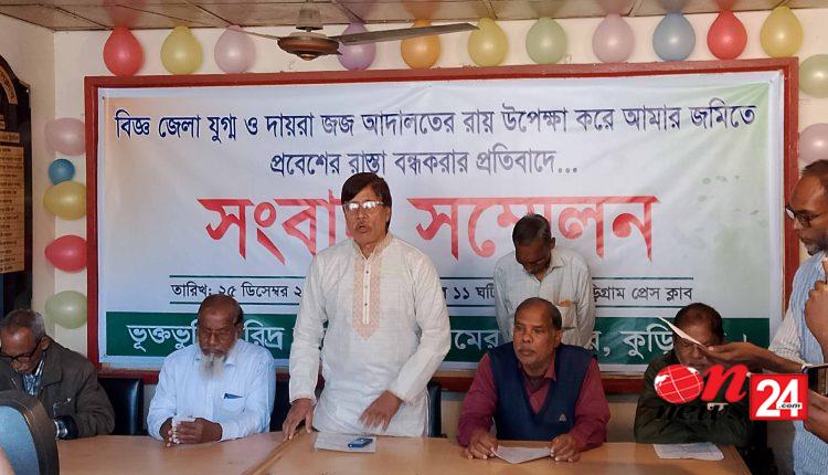 কুড়িগ্রামে আদালতের রায় পাওয়া জমিতে প্রবেশের রাস্তা বন্ধের প্রতিবাদে সংবাদ সম্মেলন