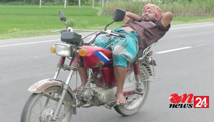 কুড়িগ্রামে চলন্ত বাইকে শুয়ে বসে সবই করেন আজাদ আলী