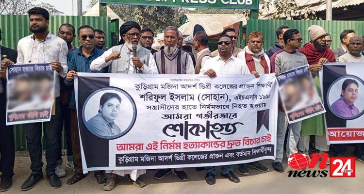 কুড়িগ্রামে ছাত্রলীগের সন্তাসী হামলায় আওয়ামীলীগ নেতা ও ব্যবসায়ী শরিফুল ইসলাম সোহান হত্যাকান্ডে জড়িতদের দৃষ্টান্তমূলক শাস্তির দাবিতে মানব বন্ধন অনুষ্ঠিত হয়েছে।