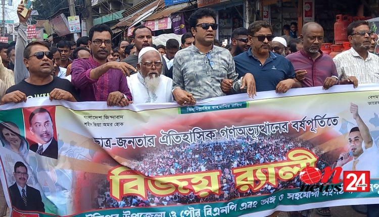 কুড়িগ্রামের উলিপুরে ছাত্র জনতার গণ-অভ্যুত্থানের বর্ষপূর্তি উদযাপন উপলক্ষে বিজয় মিছিল করেছে উলিপুর উপজেলা বিএনপি’র অঙ্গ সংগঠনের নেতাকর্মীরা।