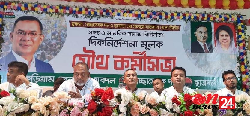 সাম্য ও মানবিক সমাজ বিনির্মাণে দিকনির্দেশনা মূলক যৌথ কর্মীসভা কুড়িগ্রামে অনুষ্ঠিত হয়েছে। যুবদল, স্বেচ্ছাসেবক দল ও ছাত্রদলের সমন্বয়ে সারাদেশের জেলা ভিত্তিক এ যৌথ কর্মীসভা অনুষ্ঠিত হচ্ছে। কুড়িগ্রাম জেলা যুবদল, স্বেচ্ছাসেবক দল ও ছাত্রদল এ যৌথ সভাকর্মী সভার আয়োজন করে। শুক্রবার বিকেলে কুড়িগ্রাম কলেজ মোড়স্থ পৌর অডিটোরিয়ামে যৌথ কর্মীসভায় সভাপতিত্ব করেন বাংলাদেশ জাতীয়তাবাদী স্বেচ্ছাসেবক দলের কেন্দ্রীয় কমিটির সভাপতি এস এম জিলানী। প্রধান অতিথী হিসেবে উপস্থিত ছিলেন বাংলাদেশ জাতীয়তাবাদী যুবদল কেন্দ্রীয় কমিটির সাধারন সম্পাদক মোহাম্মদ নুরুল ইসলাম নয়ন। এছাড়া যৌথ কর্মী সভায় বিশেষ অতিথি হিসেবে উপস্থিত ছিলেন বাংলাদেশ জাতীয়তাবাদী স্বেচ্ছাসেবক দল কেন্দ্রীয় কমিটির সিনিয়র সহসভাপতি মোহাম্মদ ইয়াসিন আলী, জাতীয়তাবাদী ছাত্রদল কেন্দ্রীয় যুগ্ম সাধারণ সম্পাদক শ্যামল মালুম, জাতীয়তাবাদী স্বেচ্ছাসেবক দল কেন্দ্রীয় কমিটির সহসাংগঠনিক সম্পাদক গাজী সুলতান জুয়েল, জাতীয়তাবাদী স্বেচ্ছাসেবক দল কেন্দ্রীয় কমিটির সহ প্রচার সম্পাদক আক্তারুজ্জামান জনি, জাতীয়তাবাদী ছাত্রদল কেন্দ্রীয় কমিটির যুগ্ন সম্পাদক মাহমুদুল হাসান আল মার্জান, জাতীয়তাবাদী যুবদল কেন্দ্রীয় কমিটির সাবেক তথ্য ও প্রযুক্তি বিষয়ক সম্পাদক জাহিদ হাসান, জাতীয়তাবাদী যুবদল কেন্দ্রীয় কমিটির সাবেক সহসাংগঠনিক সম্পাদক মাহবুবুর রহমান পলাশ, জাতীয়তাবাদী স্বেচ্ছাসেবক দল কেন্দ্রীয় কমিটির সহসমাজসেবা বিষয়ক সম্পাদক ফয়সাল আহমেদ পলাশ, রংপুর জেলা যুবদলের সভাপতি নাজমুল ইসলাম নাজু। এসময় অন্যান্যদের মধ্যে বক্তব্য রাখেন কুড়িগ্রাম জেলা যুবদলের সভাপতি রায়হান কবীর, সাধারন সম্পাদক নাদিম আহমেদ, জেলা স্বেচ্ছাসেবক দলের আহবায়ক ওয়াহেদ রানা, সদস্য সচিব আরমান হোসেন, জেলা ছাত্রদলের সভাপতি আমিমুল ইহসান, সাধারন সম্পাদক হাসান যোবায়ের হিমেল। যৌথ কর্মী সভায় জেলা, উপজেলা ও পৌর শাখার সকল যুবদল, স্বেচ্ছাসেবক দল ও ছাত্রদলের নেতাকর্মীগন উপস্থিত ছিলেন।
