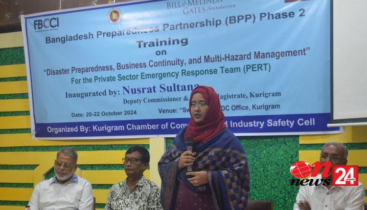 দেশের ব্যবসায়ী সমাজের শীর্ষ সংগঠন দি ফেডারেশন অব বাংলাদেশ চেম্বার্স অব কমার্স এন্ড ইন্ডাস্ট্রি (এফবিসিসিআই) এর উদ্যোগে কুড়িগ্রাম চেম্বার অফ কমার্স এন্ড ইন্ডাস্ট্রি এর আয়োজনে কুড়িগ্রামে দুর্যোগ মোকাবিলা ও দুর্যোগকালীন ব্যবসায়-বাণিজ্য সচল রাখতে তিন দিনব্যাপী প্রশিক্ষণ কর্মসূচির আয়োজন করা হয়েছে।