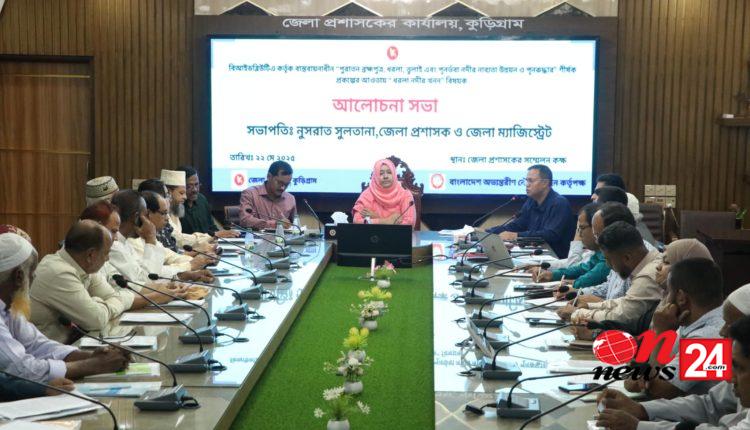 কুড়িগ্রামে বিআইডব্লিউটিএ’র বাস্তবায়নাধীন জেলার পুরাতন ব্রহ্মপুত্র, ধরলা, তিলাই এবং পুর্নভবা নদীর নাব্যতা উন্নয়ন ও পুনরুদ্ধার শীর্ষক প্রকল্পের আওতায ধরলা নদীর খনন বিষয়ক আলোচনা সভা অনুষ্ঠিত হয়েছে।