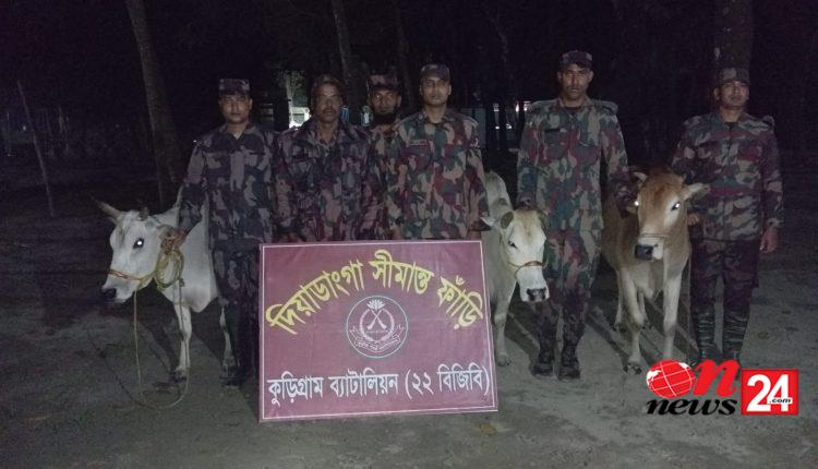 কুড়িগ্রামে বিজিবির অভিযানে ভারতীয় ৪টি গরু–মদ জব্দ