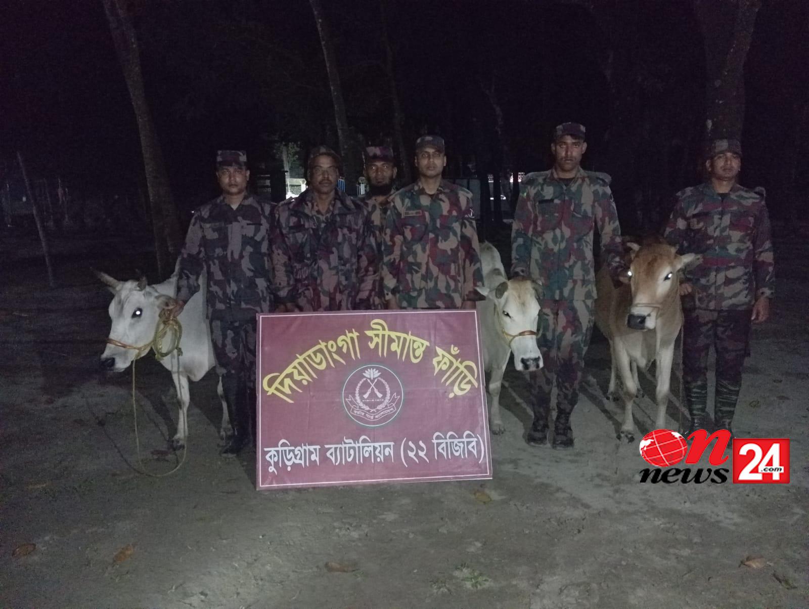 মঙ্গলবার (২৫ নভেম্বর) দুপুরে বিষয়টি নিশ্চিত করেন কুড়িগ্রাম ২২ বিজিবির অধিনায়ক লেফটেন্যান্ট কর্নেল মোহাম্মদ মাহবুব–উল–হক। এর আগে সোমবার গভীর রাতে সীমান্ত এলাকায় পৃথক অভিযানে এসব গবাদিপশু ও মদ জব্দ করা হয়।