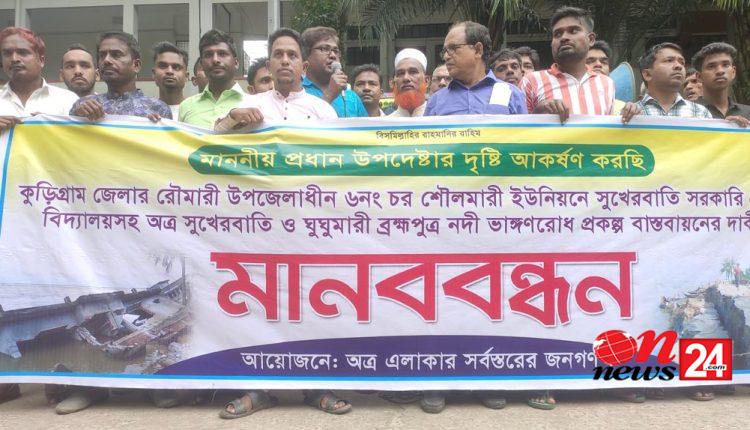 কুড়িগ্রামে ব্রহ্মপুত্রের ভাঙ্গনরোধে ব্যবস্থা নেয়ার দাবিতে বিক্ষোভ