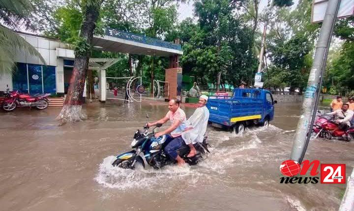 কুড়িগ্রামে ভারী বৃষ্টিপাত সারা শহরজুড়ে জলাবদ্ধতা। গুরুত্বপূর্ণ অফিস আদালত পানিতে নিমজ্জিত।