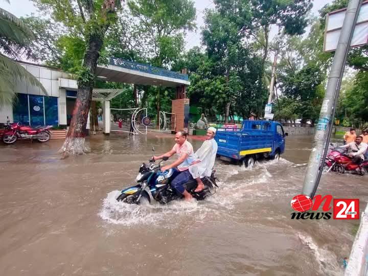 কুড়িগ্রামে ভারী বৃষ্টিপাত সারা শহরজুড়ে জলাবদ্ধতা। গুরুত্বপূর্ণ অফিস আদালত পানিতে নিমজ্জিত।