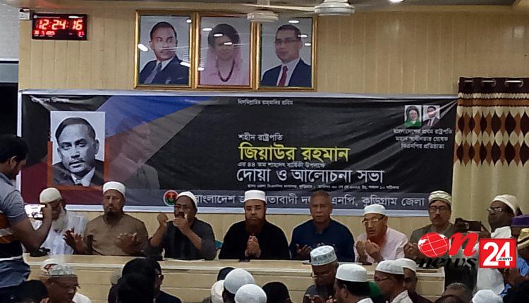 কুড়িগ্রামে শহীদ রাষ্ট্রপতি জিয়াউর রহমানের ৪৪ তম শাহাদৎ বার্ষিকি উপলক্ষে দোয়া মাহফিল ও আলোচনা সভা অনুষ্ঠিত হয়েছে। ৩০ মে সকাল ১০ টায় ঘোষপারাস্ত কুড়িগ্রাম জেলা বিএনপির কার্যালয়ে আলোচনা সভা ও দেয়া মাহফিলের আয়োজন করা হয়েছে। এতে সভাপতিত্ব করেন কুড়িগ্রাম জেলা বিএনপির আহবায়ক মোঃ মোস্তাফিজ রহমান মোস্তফা, অনুষ্ঠানে প্রধান অতিথি হিসেবে উপস্থিত থেকে বক্তব্য রাখেন জেলা বিএনপির সদস্য সচিব আলহাজ্ব সোহেল হোসনাইন কায়কোবাদ, যুগ্ম আহবায়ক শফিকুল ইসলাম বেবু, অধ্যাপক হাসিবুর রহমান হাসিব প্রমুখ।