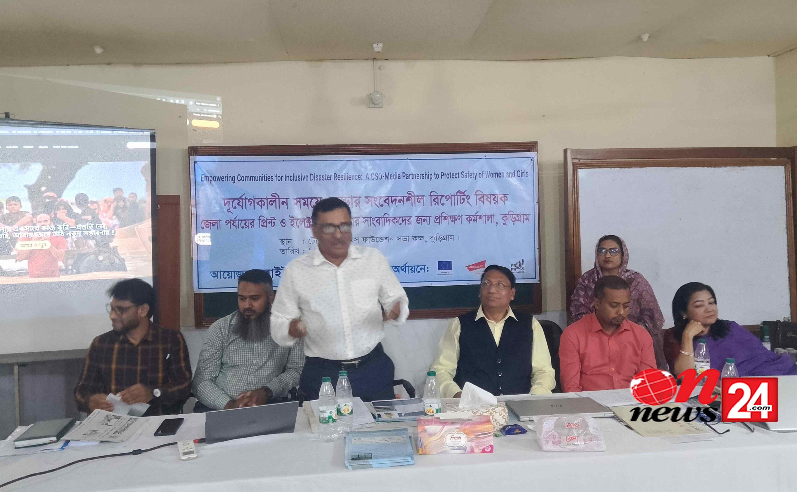 কুড়িগ্রামে জেলা পর্যায়ের প্রিন্ট ও ইলেকট্রনিক মিডিয়ার সাংবাদিকদের নিয়ে দুর্যোগকালীল সময়ে জেন্ডার সংবেদনশীল রিপোর্টিং বিষয়ক দিনব্যাপী এক প্রশিক্ষণ কর্মশালা অনুষ্ঠিত হয়েছে।