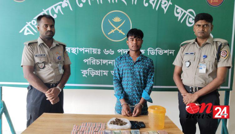 কুড়িগ্রামে সেনাবাহিনীর যৌথ অভিযানে ট্যাপেন্টাডল ট্যাবলেট, গাঁজা, নগদ টাকা, মোবাইল ফোনসহ মাদক কারবারী আটক