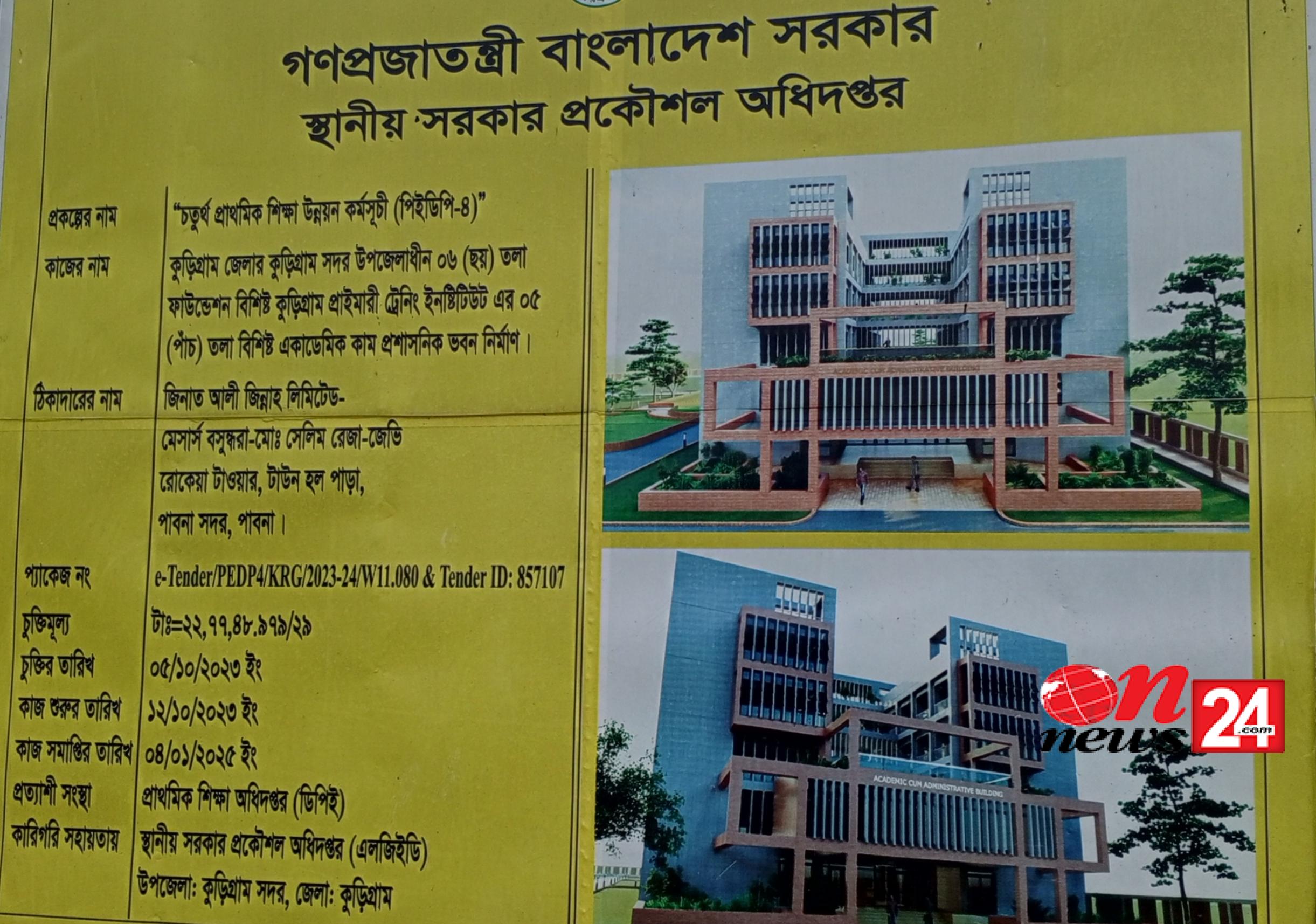 কুড়িগ্রামে ২৪কোটি টাকা ব্যয়ে পিটিআই ৬ তলা বিশিষ্ট ভবন নির্মাণ কাজে অনিয়মের অভিযোগ