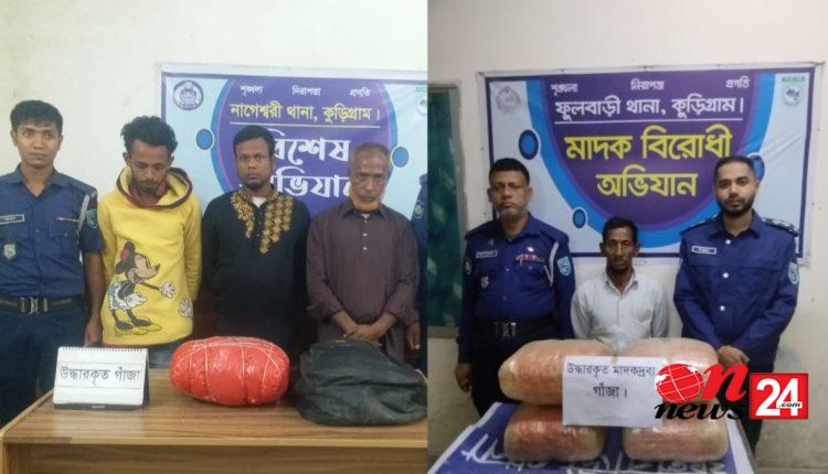 কু‌ড়িগ্রা‌মে মাদক বিরোধী পৃথক অ‌ভিযানে দু,জায়গা থেকে ২৪ কে‌জি গাঁজাসহ চারজন মাদক কারবা‌রি‌কে গ্রেফতার ক‌রে‌ছে পু‌লিশ।