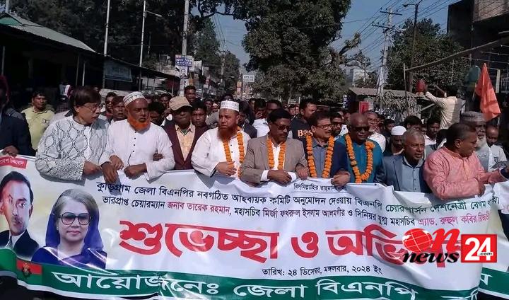মঙ্গলবার দুপুরে জেলা বিএনপির আয়ােজনে জেলা শহরের ঘোষপাড়া থেকে মিছিলটি বের হয়ে শহরের প্রধান প্রধান সড়ক প্রদক্ষিণ করে। পর কুড়িগ্রাম কলজ মাড়স্ত এক সমাবশ আহবায়ক কমিটির সদস্যদের ফুলেল শুভেচ্ছা জানান বিএনপির অঙ্গ-সংগঠনের নেতাকর্মীরা।