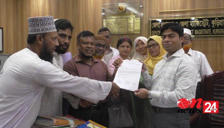 কুড়িগ্রাম মাধ্যমিক শিক্ষা প্রতিষ্ঠান জাতীয়করণের দাবীতে জেলা প্রশাককে স্মারকলিপি প্রদান।