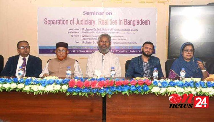 কুমিল্লা বিশ্ববিদ্যালয়ের (কুবি) লোকপ্রশাসন বিভাগের উদ্যোগে এবং পাবলিক অ্যাডমিনিস্ট্রেশন অ্যাসোসিয়েশনের সহযোগিতায় ‘বিচার বিভাগ পৃথকীকরণ ও বাংলাদেশের বাস্তবতা’ বিষয়ক সেমিনার অনুষ্ঠিত হয়েছে। মঙ্গলবার (০৩ ডিসেম্বর) সামাজিক বিজ্ঞান অনুষদের কনফারেন্স কক্ষে সেমিনারটি অনুষ্ঠিত হয়েছে।