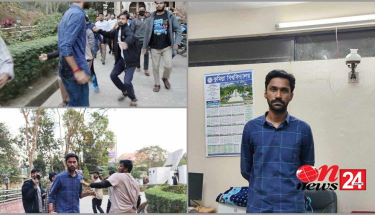 কুমিল্লা বিশ্ববিদ্যালয়ের (কুবি) গণিত বিভাগের ২০১৮-১৯ শিক্ষাবর্ষের শিক্ষার্থী ও ছাত্রলীগ নেতা অর্ণব সিংহ রায়কে মারধর করে পুলিশের কাছে সোপর্দ করেছে বৈষম্য বিরোধী ছাত্র আন্দোলনের সমন্বয়করা।