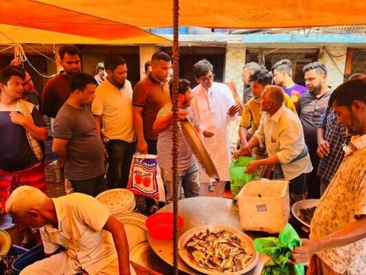 এর আগে এদিন সকালে তিনি রাজগঞ্জ মাছ বাজারে ক্রেতা-বিক্রেতাদের খোঁজ নেন এবং নিজের বাসার জন্য দেশীয় মাছ কেনেন।