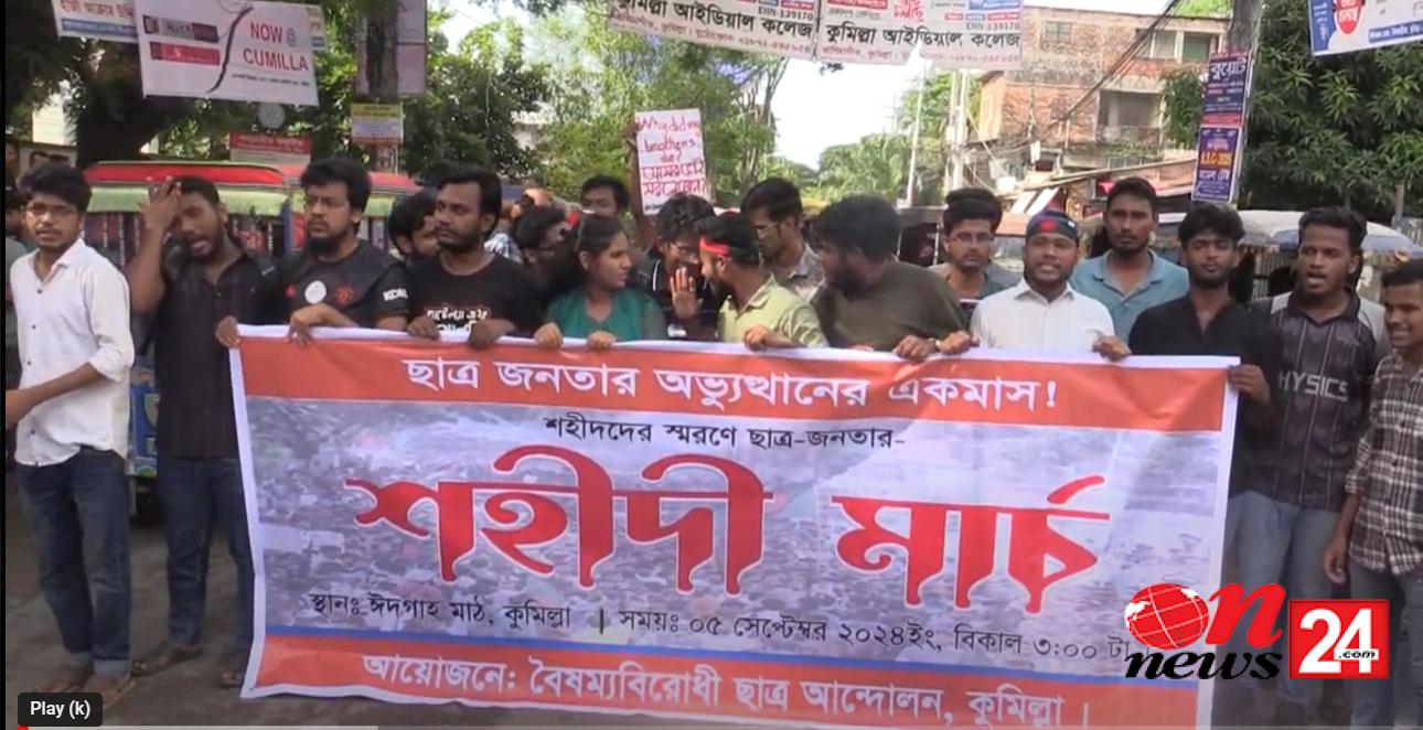 ছাত্রজনতার অভ্যুত্থানের এক মাস উপলক্ষে শহীদদের স্মরনে ছাত্রজনতার শহীদী মার্চ পালন করে কুমিল্লা বৈষম্যবিরোধী ছাত্র আন্দোলন।