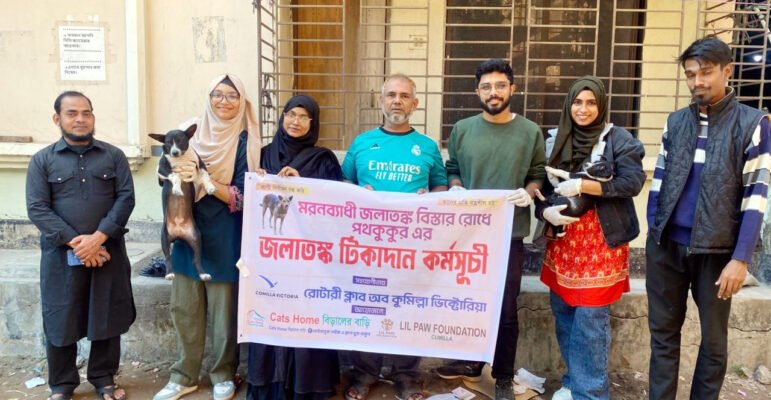 কুমিল্লায় ক্যাটস হোম বিড়ালের বাড়ি ও লিল পো ফাউন্ডেশন, কুমিল্লার আয়োজনে জলাতংকের মত মরনব্যাধি বিস্তার রোধে পথ কুকুরকে রেবিস ভেক্সিন পুশ করা হয়েছে।