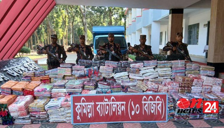 কুমিল্লায় দেড় কোটি টাকার অবৈধ ভারতীয় শাড়ি জব্দ