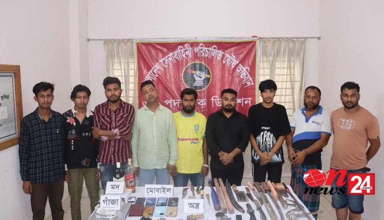 কুমিল্লায় যৌথবাহিনীর অভিযানে দেশি-বিদেশি অস্ত্র সহ কিশোর গ্যাংয়ের ৯ সদস্য আটক