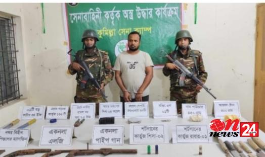 কুমিল্লায় যৌথ বাহিনীর অভিযানে বিপুল পরিমান অস্ত্র সহ যুবলীগ নেতা গ্রেফতার