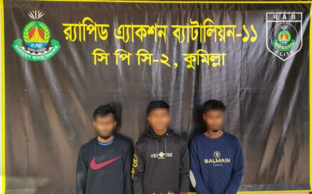 এ সময় গ্রেফতার করা হয়—১. আরিফ হোসেন (২৯)২. মোঃ সোহাগ মিয়া (২৭)৩. মোঃ শাফি (১৯)প্রাথমিক অনুসন্ধানে জানা যায়—গ্রেফতারকৃত আসামী আরিফ হোসেন (২৯) কুমিল্লা জেলার বরুড়া থানার ঝলম গ্রামের বাসিন্দা এবং তিনি হাবিবুল্লাহর ছেলে। মোঃ সোহাগ মিয়া (২৭) কুমিল্লা জেলার কোতয়ালী মডেল থানার রাচিয়া গ্রামের বাসিন্দা ও মোঃ কামাল হোসেনের ছেলে। মোঃ শাফি (১৯) একই থানার রাচিয়া গ্রামের বাসিন্দা এবং জাকির হোসেনের ছেলে।