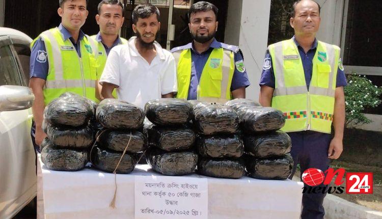 কুমিল্লায় ৫০কেজি গাঁজাসহ মাদক ব্যবসায়ী আটক, প্রাইভেট কার জব্দ