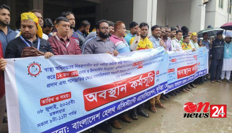 কুমিল্লায় ৬দফা দাবিতে অবস্থান কর্মসূচি পালন করেছে জেলার স্বাস্থ্য সহকারীরা