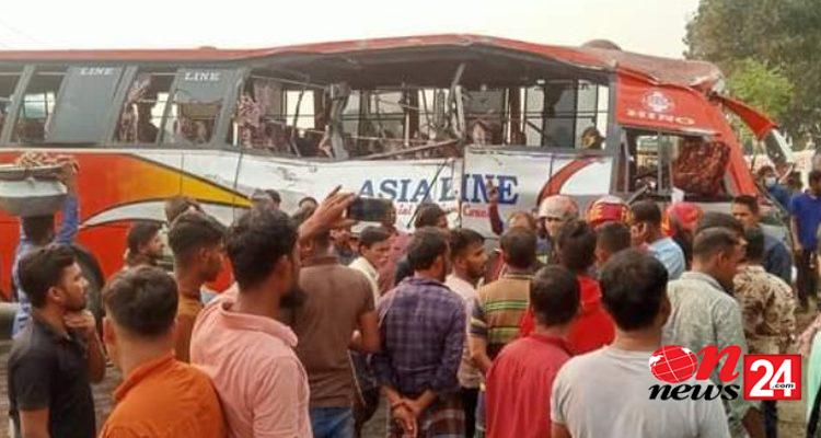 অপেক্ষামান ট্রাকের সাথে সংঘর্ষে বাসের অন্তত ৩০ যাত্রী আহত হয়। মোটরসাইকেলে থাকা ৩ জনের মধ্যে ২ জন গুরুতর আহত হয়।