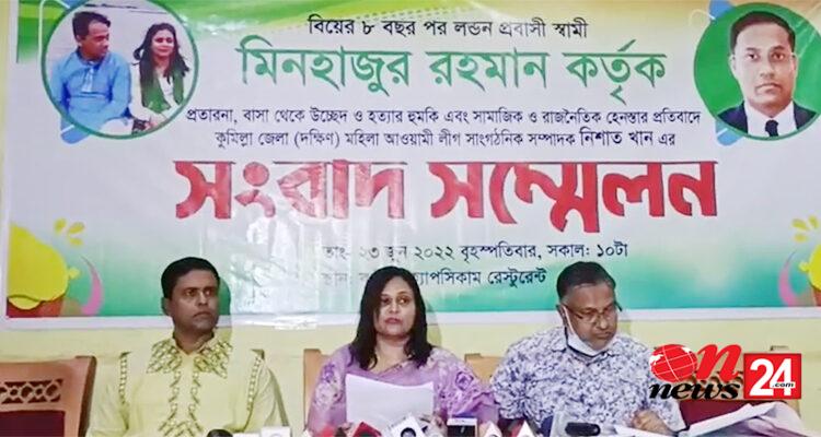 বৃহস্পতিবার সকালে কুমিল্লা নগরীর একটি রেস্টুরেন্টে সংবাদ সম্মেলনে তিনি তার স্বামী মোঃ মিনহাজুর রহমান এর বিরুদ্ধে লিখিত আকারে বিভিন্ন অভিযোগ তুলে ধরেন।