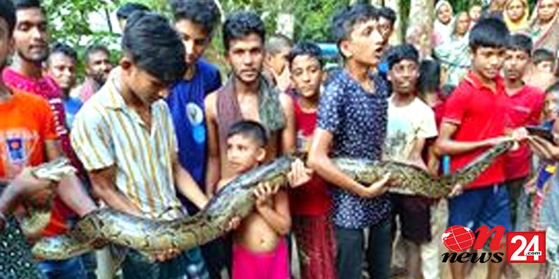 স্থানীয় যুবক নাসির,রুবেল মিয়া,সাব্বির,শফিক জানায় তারা, সন্ধ্যার আগে ধানী জমিতে একটি হাঁসের ডানা জাপটানো ও চিৎকার শুনে এগিয়ে যাই। পরে আমরা দেখি একটি অজগর হাঁস গিলছে। আমাদের দেখে অজগরটি পুকুরে এসে পড়ে। পরে সবাই মিলে কৌশলে সাপটিকে ধরে নিয়ে আসে।