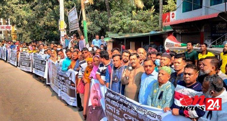 কুমিল্লা কাউন্সিলর হত্যাকারীদের গ্রেফতারের দাবীতে মেয়রের নেতৃত্বে মানববন্ধন