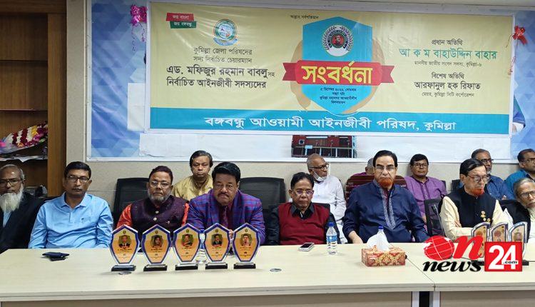 বঙ্গবন্ধু আওয়ামী আইনজীবী পরিষদের উদ্যোগে কুমিল্লা জেলা পরিষদের সদ্য নির্বাচিত চেয়ারম্যান বীর মুক্তিযুদ্ধা অ্যাডভোকেট মফিজুর রহমান বাবলুসহ নির্বাচিত আইনজীবী সদস্যদের সংবর্ধনা অনুষ্ঠান অনুষ্ঠিত হয়েছে।