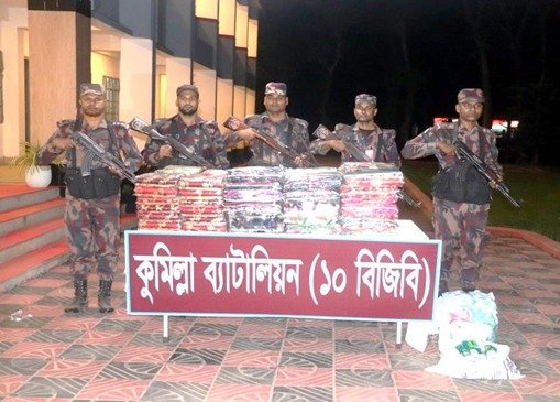 কুমিল্লা জেলার সীমান্ত এলাকায় পৃথক অভিযান চালিয়ে বিপুল পরিমাণ অবৈধ ভারতীয় শাড়ি জব্দ করেছে কুমিল্লা ব্যাটালিয়ন (১০ বিজিবি)।