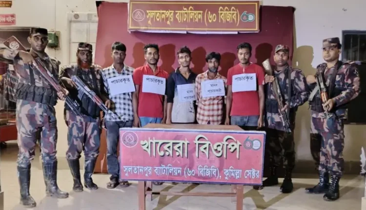 কুমিল্লা সীমান্তে ভারতে মানব পাচারকালে সিএনজি সহ ৫ জন আটক