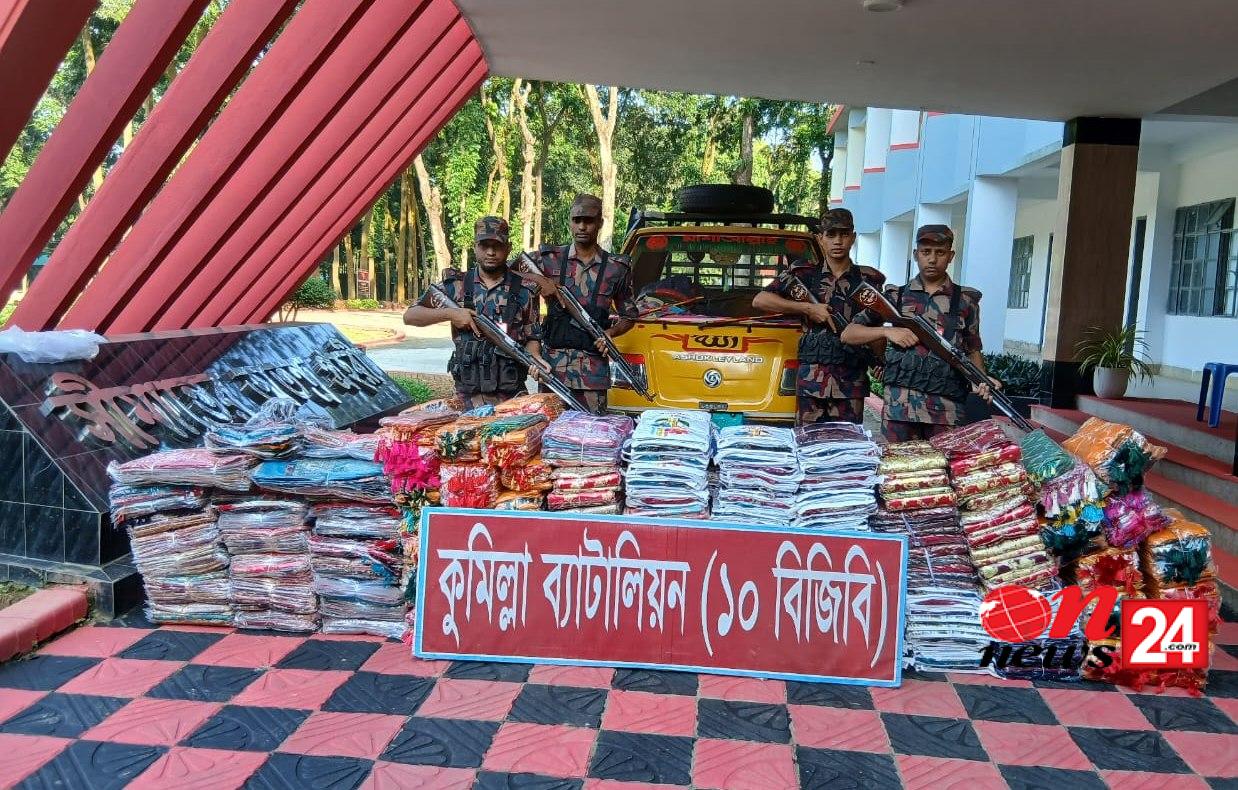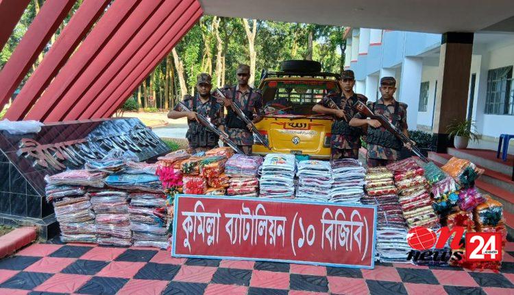 কুমিল্লা সীমান্তে ৬৮ লাখ টাকার ভারতীয় শাড়ি-শাল জব্দ