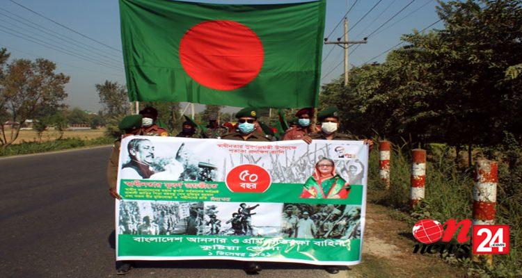 কুষ্টিয়া জেলা আনসার ও গ্রাম প্রতিরক্ষা বাহিনীর আয়োজনে মহান স্বাধীনতার সুবর্ণজয়ন্তী উদযাপন করা হয়েছে। এ উপলক্ষে ১ ডিসেম্বর বুধবার সকাল দশটায় একটি বর্ণাঢ্য শোভাযাত্রার আয়োজন করা হয়। বেলা সাড়ে ১০ টার দিকে শোভাযাত্রাটি জেলা আনসার ও গ্রাম প্রতিরক্ষা বাহিনীর ক্যাম্প থেকে বের হয়ে বিভিন্ন সড়ক প্রদক্ষিন শেষে আবারও ক্যাম্পে গিয়ে শেষ হয়। স্বাধীনতার সুবর্ণজয়ন্তী উপলক্ষে সারা দেশব্যাপী বাহিনীর কেন্দ্রীয় কর্মসুচির অংশ হিসেবে জেলা কার্যালয়ের তত্বাবধানে ৫০ জন বিভিন্ন পদবীর সদস্যর উপস্থিতি তে ৫০ মিনিট ব্যাপী ৫০টি জাতীয় পতাকা নিয়ে একযোগে শোভাযাত্রাটি অনুষ্ঠিত হয়।