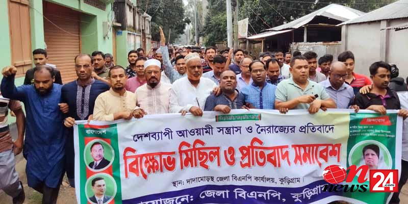 সারাদেশে আওয়ামী সন্ত্রাস ও নৈরাজ্যের প্রতিবাদে কেন্দ্রীয় কর্মসূচির অংশ হিসেবে কুড়িগ্রামে জেলা বিএনপির আয়োজনে বিক্ষোভ ও প্রতিবাদ সমাবেশ অনুষ্ঠিত হয়েছে।