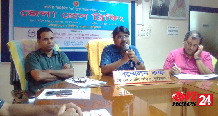 কুড়িগ্রামে জাতীয় ভিটামিন এ-প্লাস ক্যাম্পেইন আগামী ১২ ও ১৫জুন ৪দিন ব্যাপী অনুষ্ঠিত হবে। এ উপলক্ষে মঙ্গলবার সকাল ১১টায় কুড়িগ্রাম সিভিল সার্জন কার্যালয়ে গণমাধ্যম কর্মীদেরকে নিয়ে এক প্রেস ব্রিফিং অনুষ্ঠিত হয়। এতে বক্তব্য রাখেন সিভিল সার্জন ডা. মঞ্জুর-এ-মুর্শেদ, কুড়িগ্রাম প্রেসক্লাবের সভাপতি রাজু মোস্তাফিজ, সাধারন সম্পাদক আব্দুল খালেক ফারুক প্রমুখ।