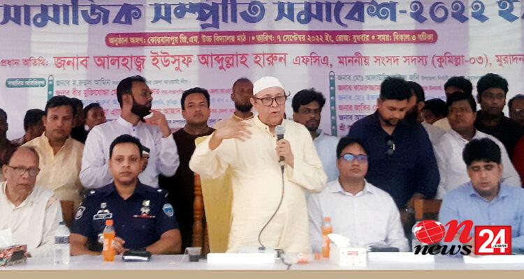 কুমিল্লার মুরাদনগর উপজেলার বাঙ্গরা বাজার থানাধীন পূর্বধইর পূর্ব ইউনিয়নের কোরবানপুর জি. এম উচ্চ বিদ্যালয় মাঠে এক সামাজিক সম্প্রীতি সমাবেশ অনুষ্ঠিত হয়েছে। বুধবার বিকালে অনুষ্ঠিত ওই সমাবেশে প্রধান অতিথির বক্তব্য রাখেন, এফবিসিসিআই’র সাবেক সভাপতি আলহাজ¦ ইউসুফ আব্দুল্লাহ হারুন এমপি।
